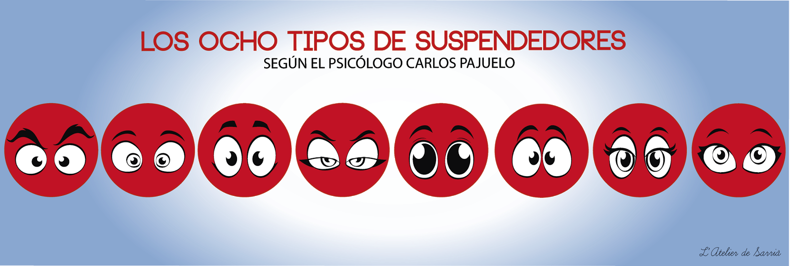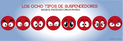 El psicólogo Carlos Pajuelo diferencia ocho tipos de suspendedores por las estrategias que adoptan para salir del paso en el momento de abordar el fracaso de sus notas. Dice que a menudo combinan o eligen un papel u otro según las circunstancias. «Los padres no debemos entrar en su juego, sino manejar nuestras cartas, y la primera es poner negro sobre blanco y, te cuente lo que te cuente, dejarle claro que ha suspendido porque no ha estudiado lo suficiente y de él depende cambiar la situación», enfatiza.